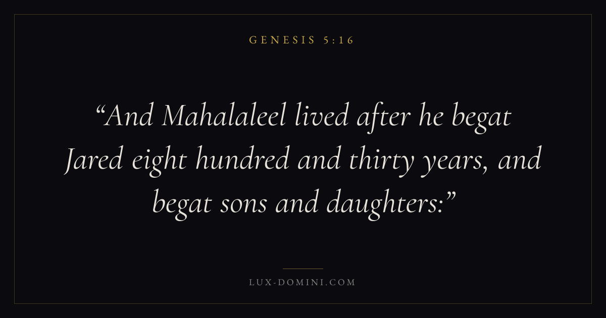 And Mahalaleel lived after he begat Jared eight hundred and thirty years, and begat sons and daughters: