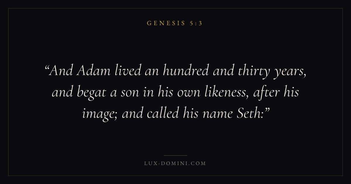 And Adam lived an hundred and thirty years, and begat a son in his own likeness, after his image; and called his name Seth: