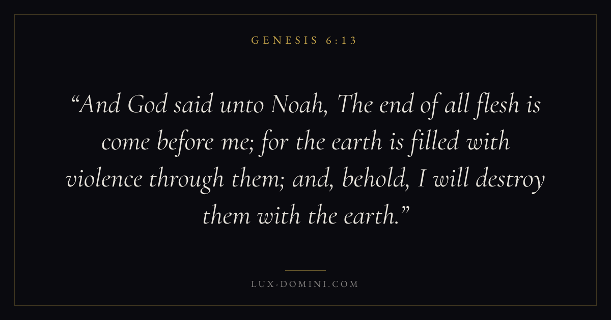 And God said unto Noah, The end of all flesh is come before me; for the earth is filled with violence through them; and, behold, I will destroy them with the earth.