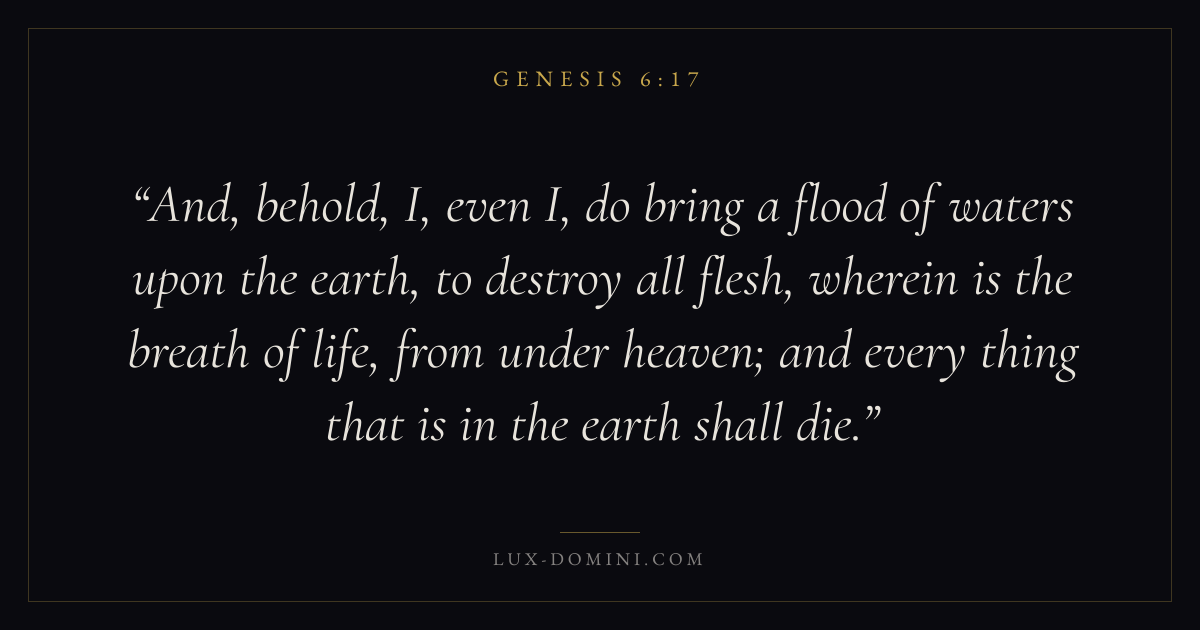 And, behold, I, even I, do bring a flood of waters upon the earth, to destroy all flesh, wherein is the breath of life, from under heaven; and every thing that is in the earth shall die.