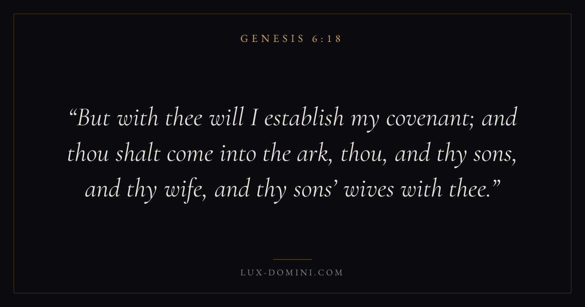 But with thee will I establish my covenant; and thou shalt come into the ark, thou, and thy sons, and thy wife, and thy sons’ wives with thee.