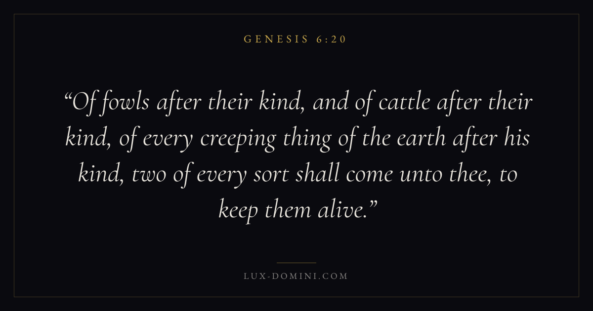 Of fowls after their kind, and of cattle after their kind, of every creeping thing of the earth after his kind, two of every sort shall come unto thee, to keep them alive.