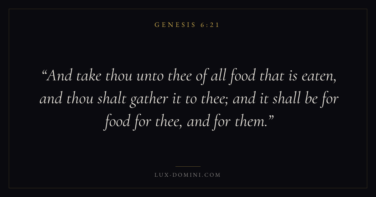 And take thou unto thee of all food that is eaten, and thou shalt gather it to thee; and it shall be for food for thee, and for them.