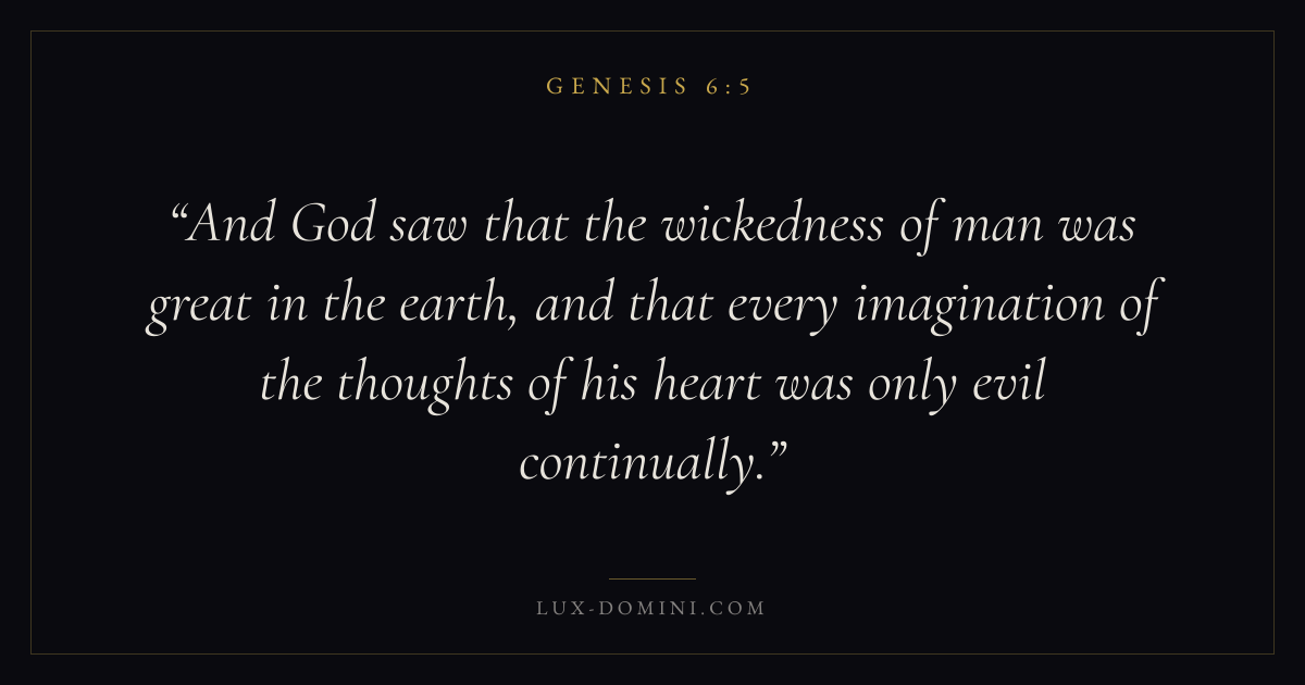 And God saw that the wickedness of man was great in the earth, and that every imagination of the thoughts of his heart was only evil continually.