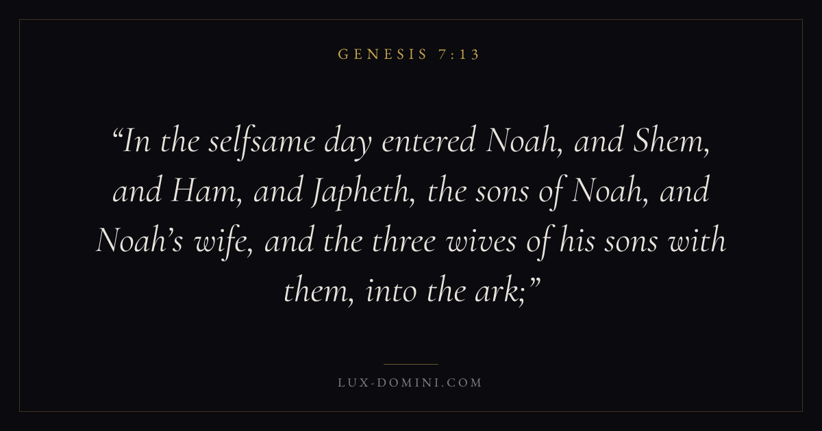 In the selfsame day entered Noah, and Shem, and Ham, and Japheth, the sons of Noah, and Noah’s wife, and the three wives of his sons with them, into the ark;