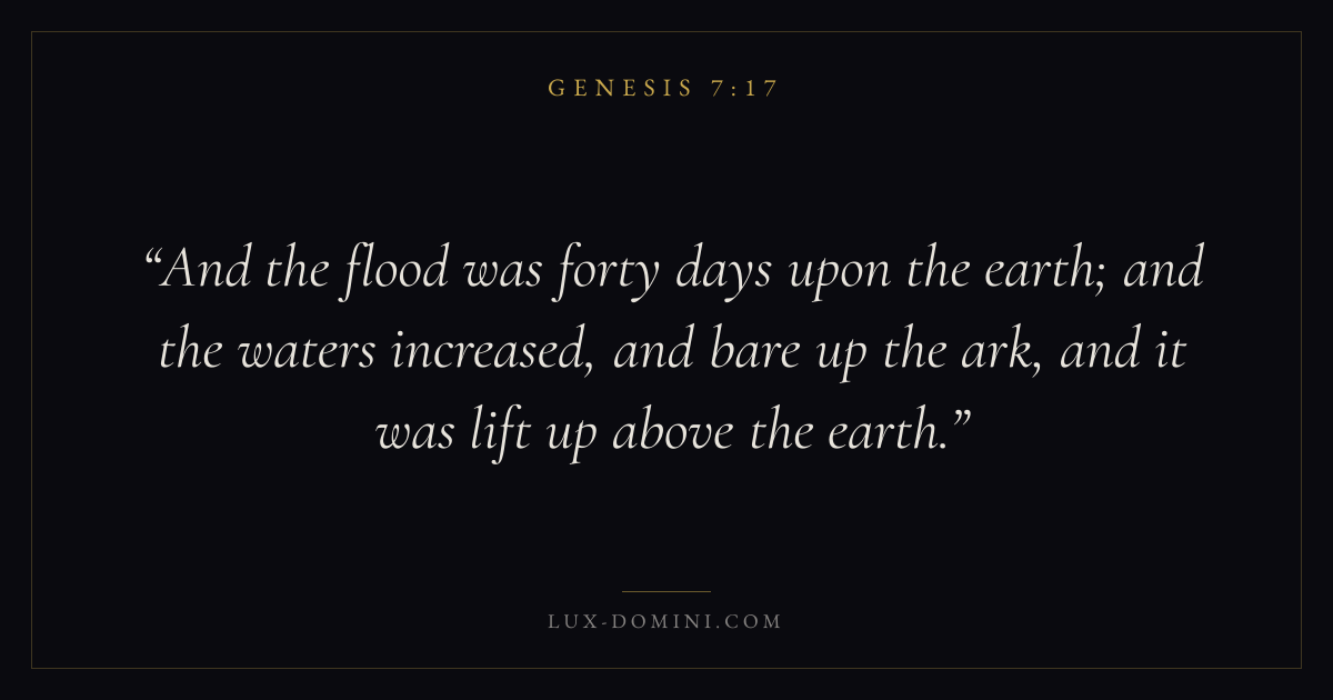 And the flood was forty days upon the earth; and the waters increased, and bare up the ark, and it was lift up above the earth.