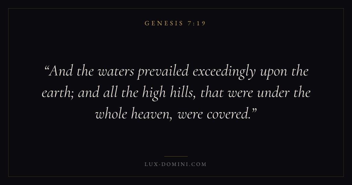 And the waters prevailed exceedingly upon the earth; and all the high hills, that were under the whole heaven, were covered.
