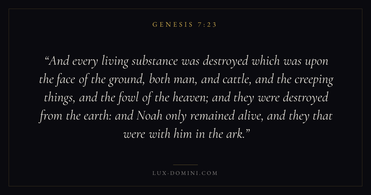 And every living substance was destroyed which was upon the face of the ground, both man, and cattle, and the creeping things, and the fowl of the heaven; and they were destroyed from the earth: and Noah only remained alive, and they that were with him in the ark.
