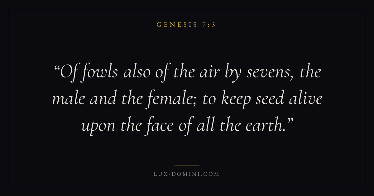 Of fowls also of the air by sevens, the male and the female; to keep seed alive upon the face of all the earth.