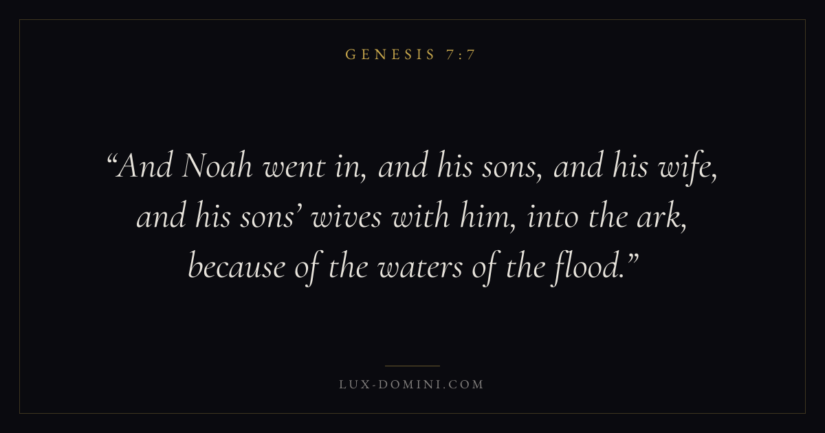 And Noah went in, and his sons, and his wife, and his sons’ wives with him, into the ark, because of the waters of the flood.