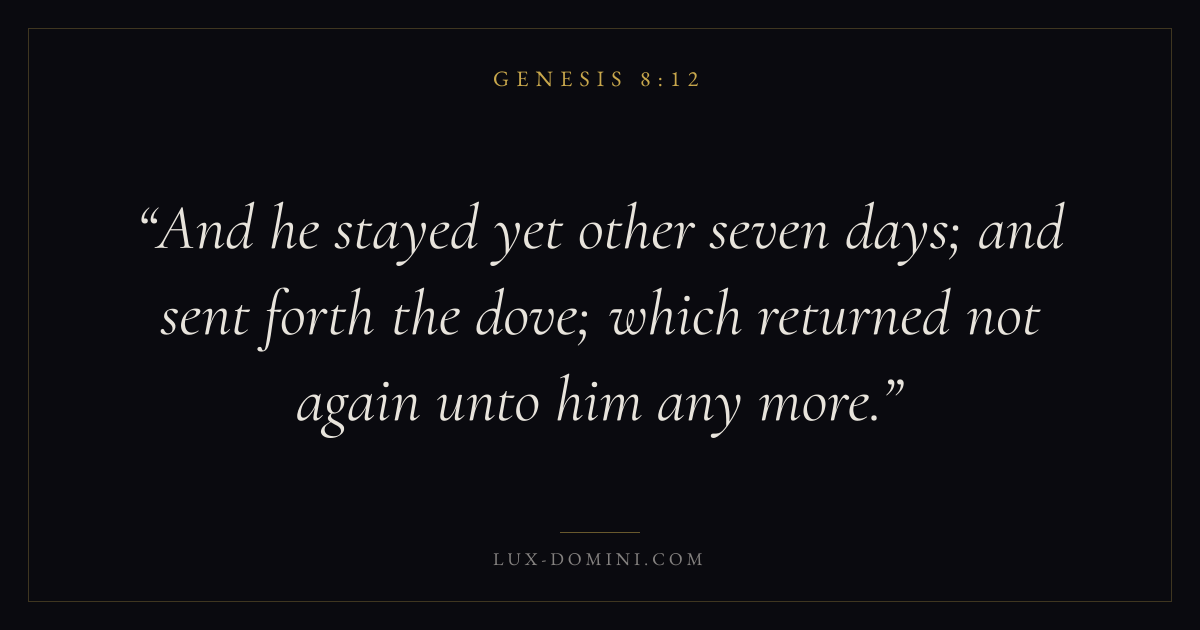 And he stayed yet other seven days; and sent forth the dove; which returned not again unto him any more.