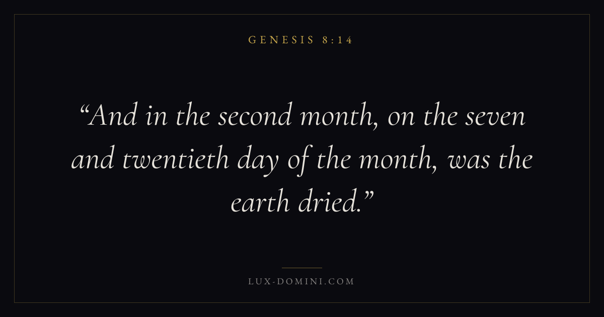 And in the second month, on the seven and twentieth day of the month, was the earth dried.