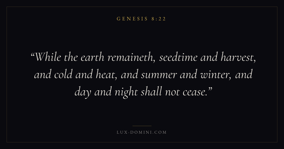 While the earth remaineth, seedtime and harvest, and cold and heat, and summer and winter, and day and night shall not cease.