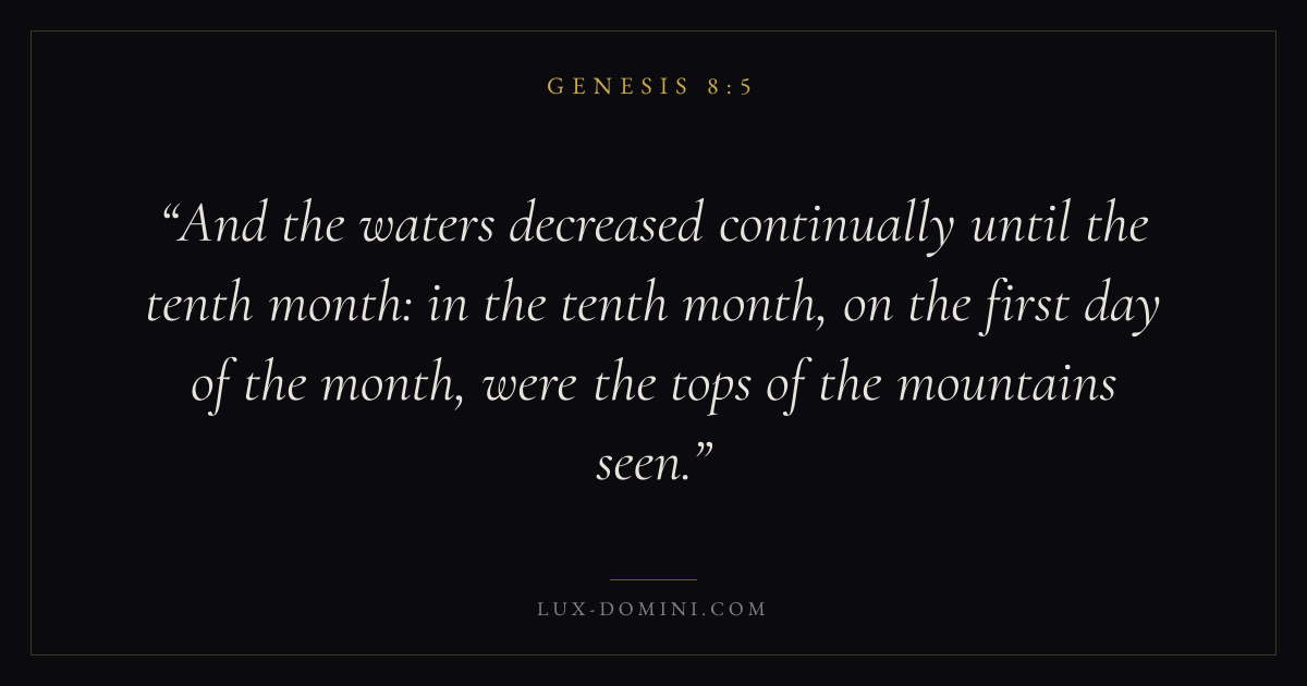 And the waters decreased continually until the tenth month: in the tenth month, on the first day of the month, were the tops of the mountains seen.