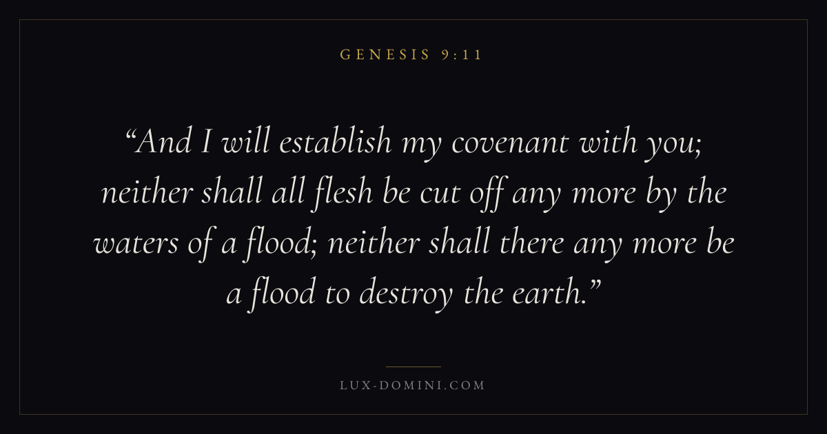 And I will establish my covenant with you; neither shall all flesh be cut off any more by the waters of a flood; neither shall there any more be a flood to destroy the earth.