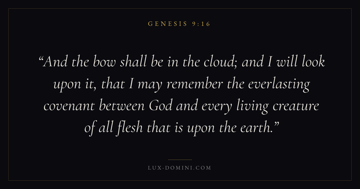 And the bow shall be in the cloud; and I will look upon it, that I may remember the everlasting covenant between God and every living creature of all flesh that is upon the earth.