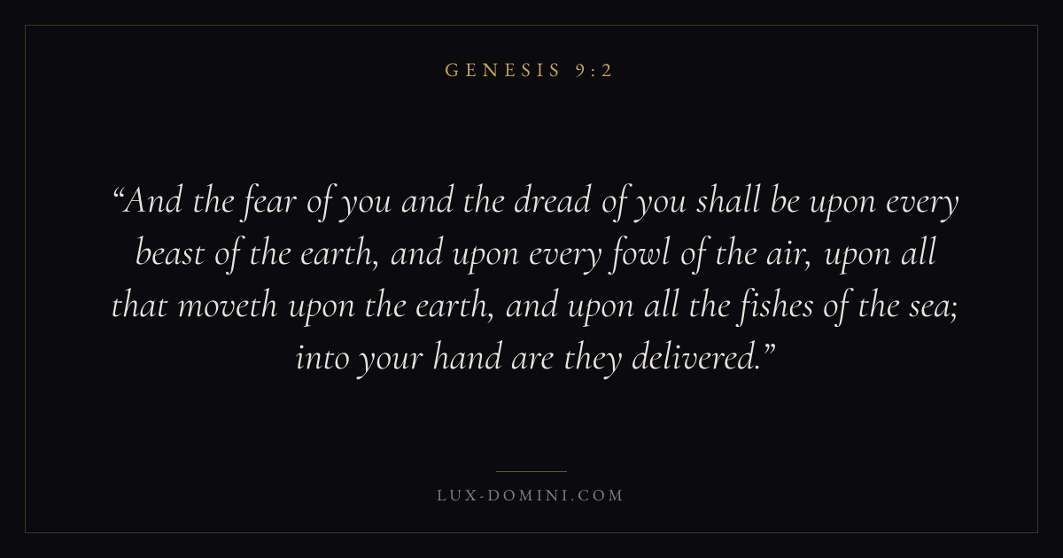 And the fear of you and the dread of you shall be upon every beast of the earth, and upon every fowl of the air, upon all that moveth upon the earth, and upon all the fishes of the sea; into your hand are they delivered.