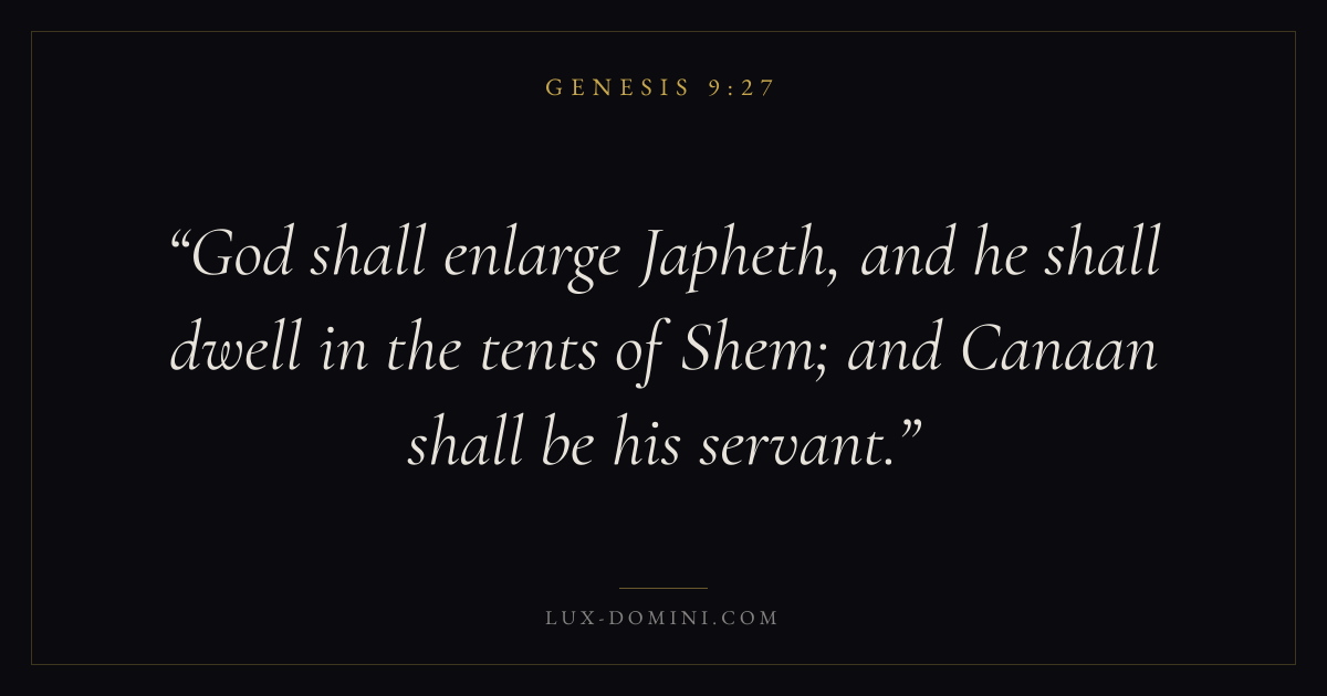 God shall enlarge Japheth, and he shall dwell in the tents of Shem; and Canaan shall be his servant.