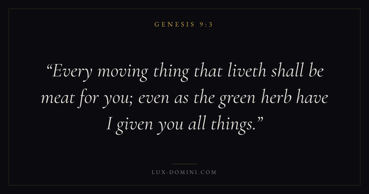 Every moving thing that liveth shall be meat for you; even as the green herb have I given you all things.
