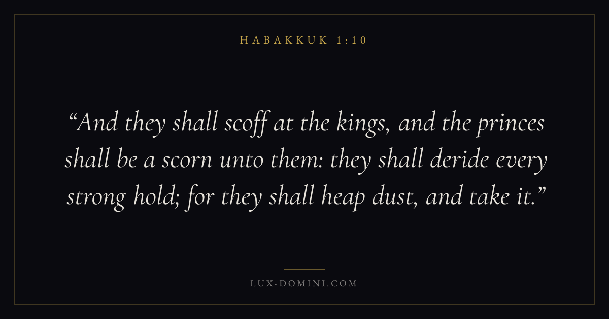 And they shall scoff at the kings, and the princes shall be a scorn unto them: they shall deride every strong hold; for they shall heap dust, and take it.
