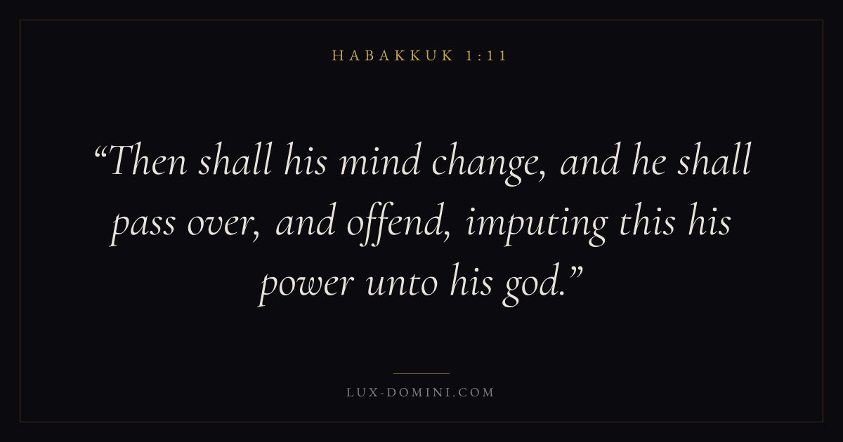 Then shall his mind change, and he shall pass over, and offend, imputing this his power unto his god.
