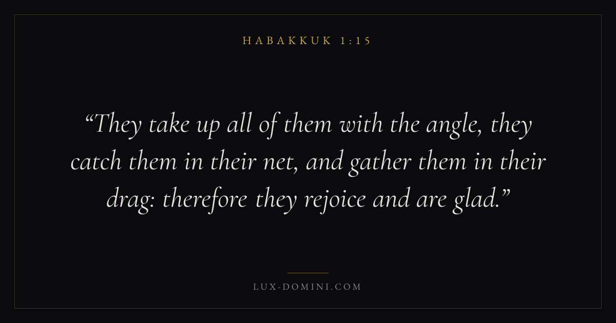 They take up all of them with the angle, they catch them in their net, and gather them in their drag: therefore they rejoice and are glad.