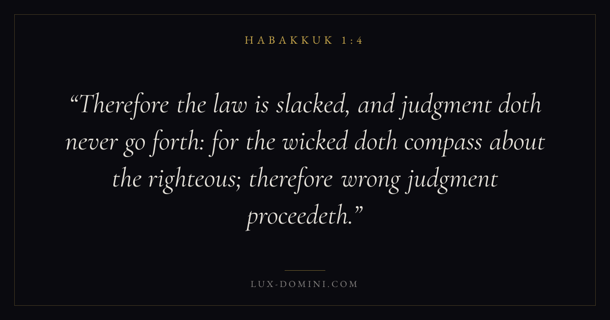 Therefore the law is slacked, and judgment doth never go forth: for the wicked doth compass about the righteous; therefore wrong judgment proceedeth.