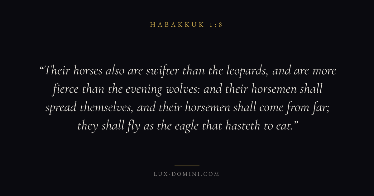 Their horses also are swifter than the leopards, and are more fierce than the evening wolves: and their horsemen shall spread themselves, and their horsemen shall come from far; they shall fly as the eagle that hasteth to eat.