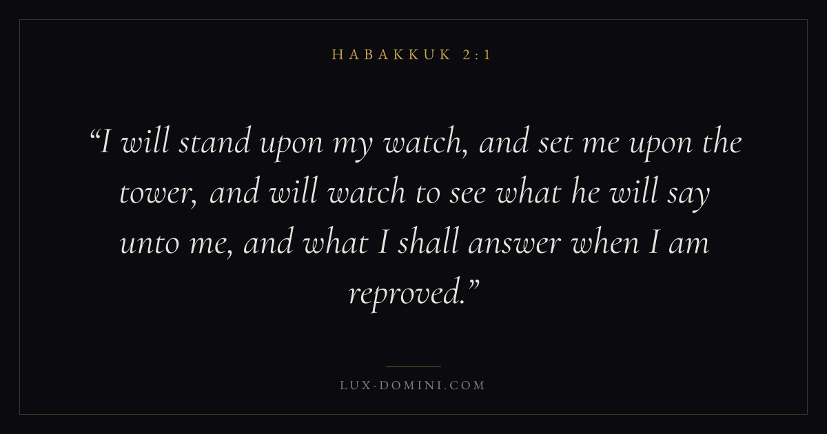 I will stand upon my watch, and set me upon the tower, and will watch to see what he will say unto me, and what I shall answer when I am reproved.