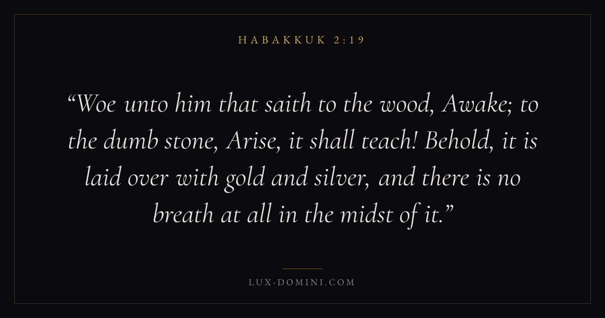 Woe unto him that saith to the wood, Awake; to the dumb stone, Arise, it shall teach! Behold, it is laid over with gold and silver, and there is no breath at all in the midst of it.