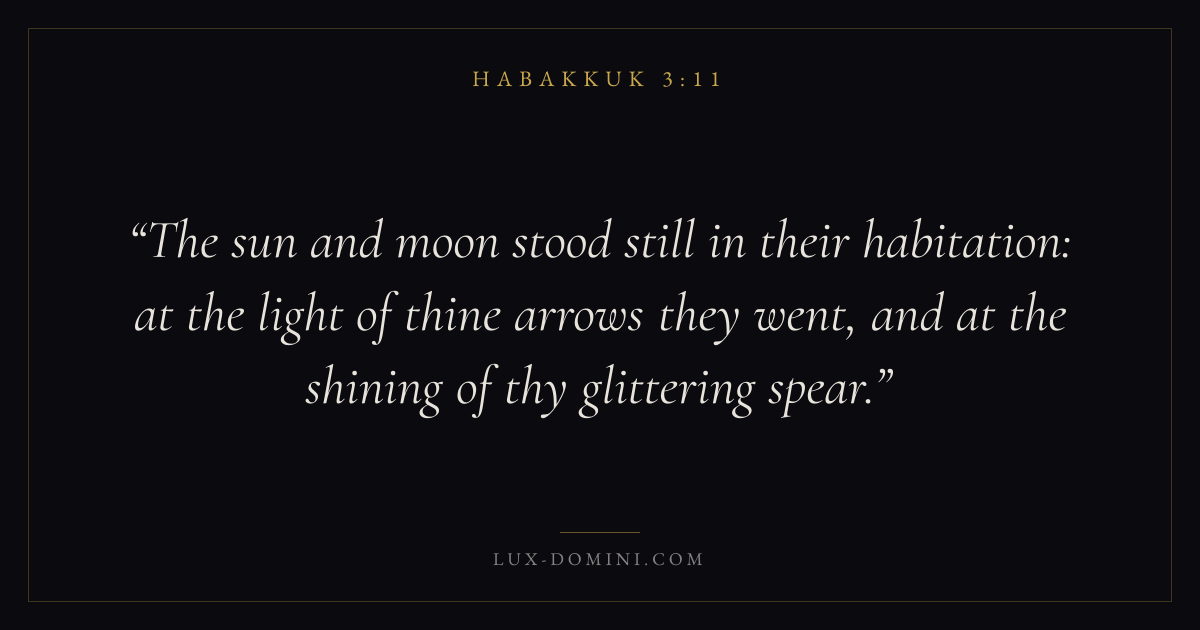 The sun and moon stood still in their habitation: at the light of thine arrows they went, and at the shining of thy glittering spear.