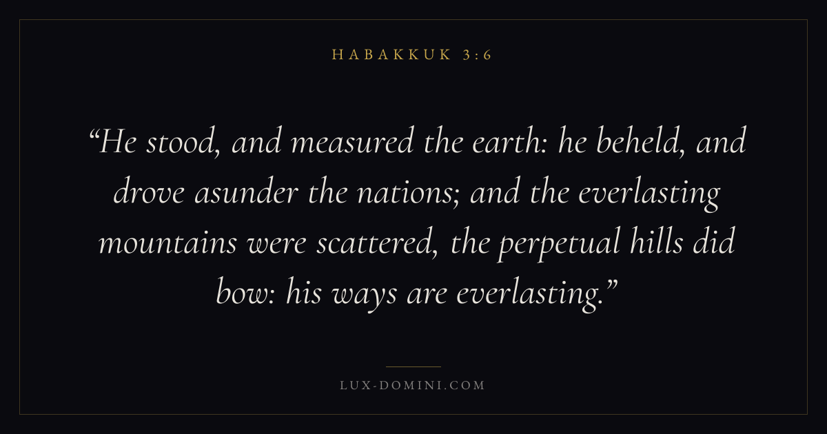 He stood, and measured the earth: he beheld, and drove asunder the nations; and the everlasting mountains were scattered, the perpetual hills did bow: his ways are everlasting.