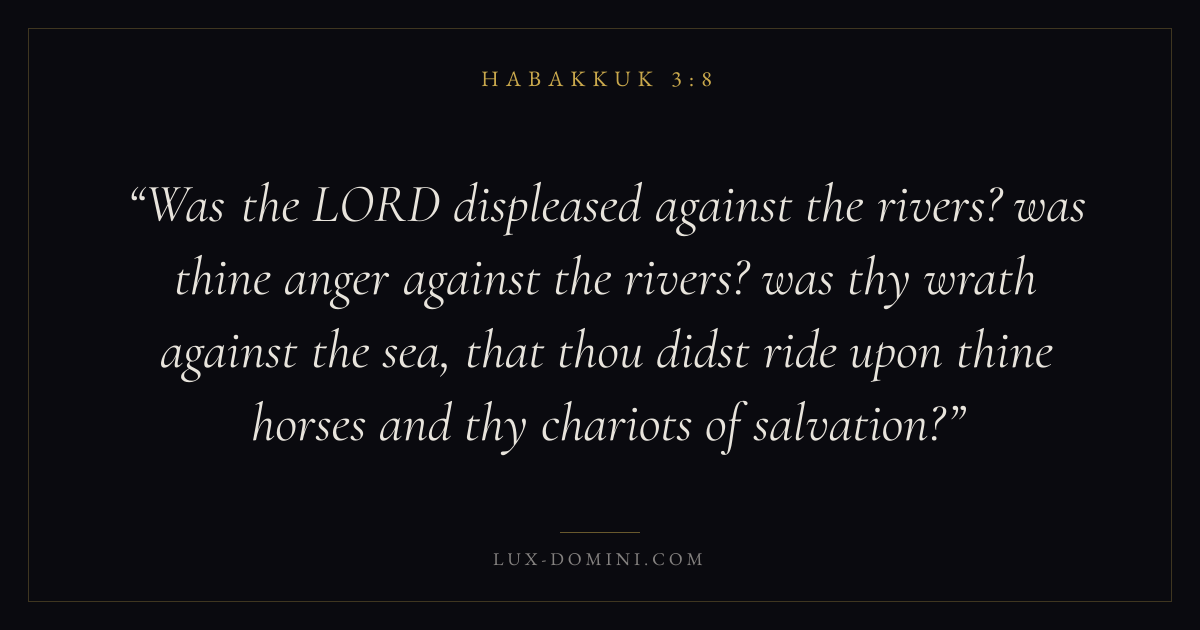 Was the LORD displeased against the rivers? was thine anger against the rivers? was thy wrath against the sea, that thou didst ride upon thine horses and thy chariots of salvation?