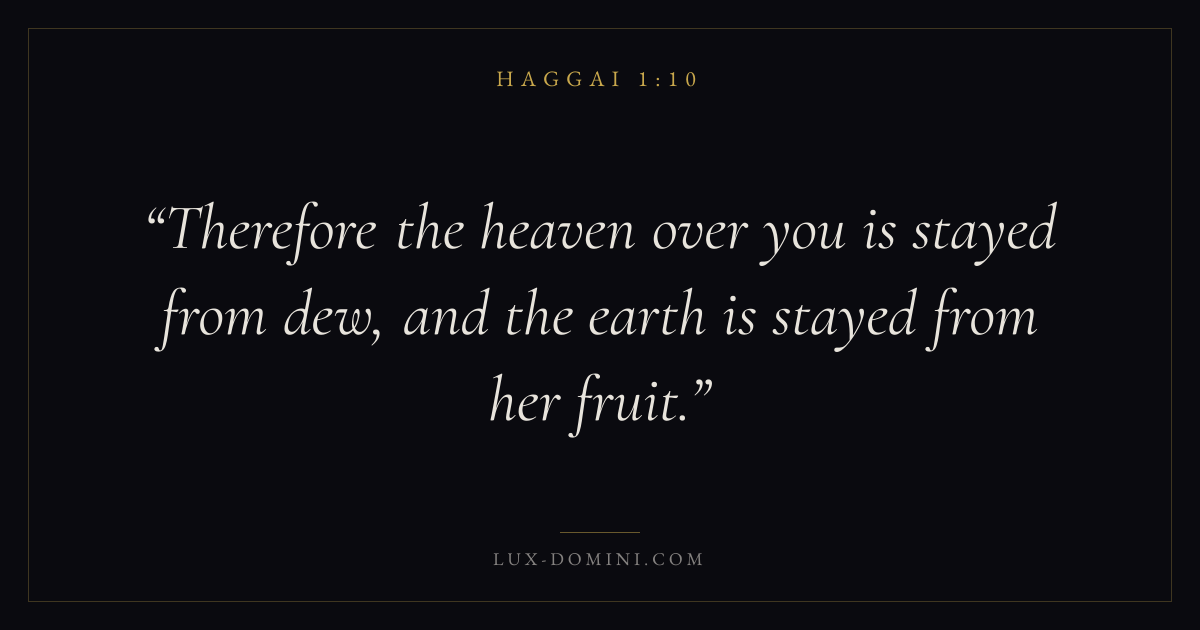 Therefore the heaven over you is stayed from dew, and the earth is stayed from her fruit.