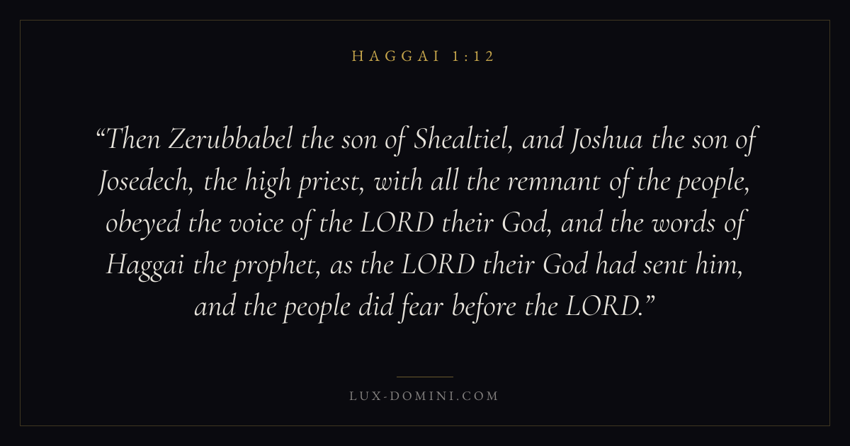 Then Zerubbabel the son of Shealtiel, and Joshua the son of Josedech, the high priest, with all the remnant of the people, obeyed the voice of the LORD their God, and the words of Haggai the prophet, as the LORD their God had sent him, and the people did fear before the LORD.