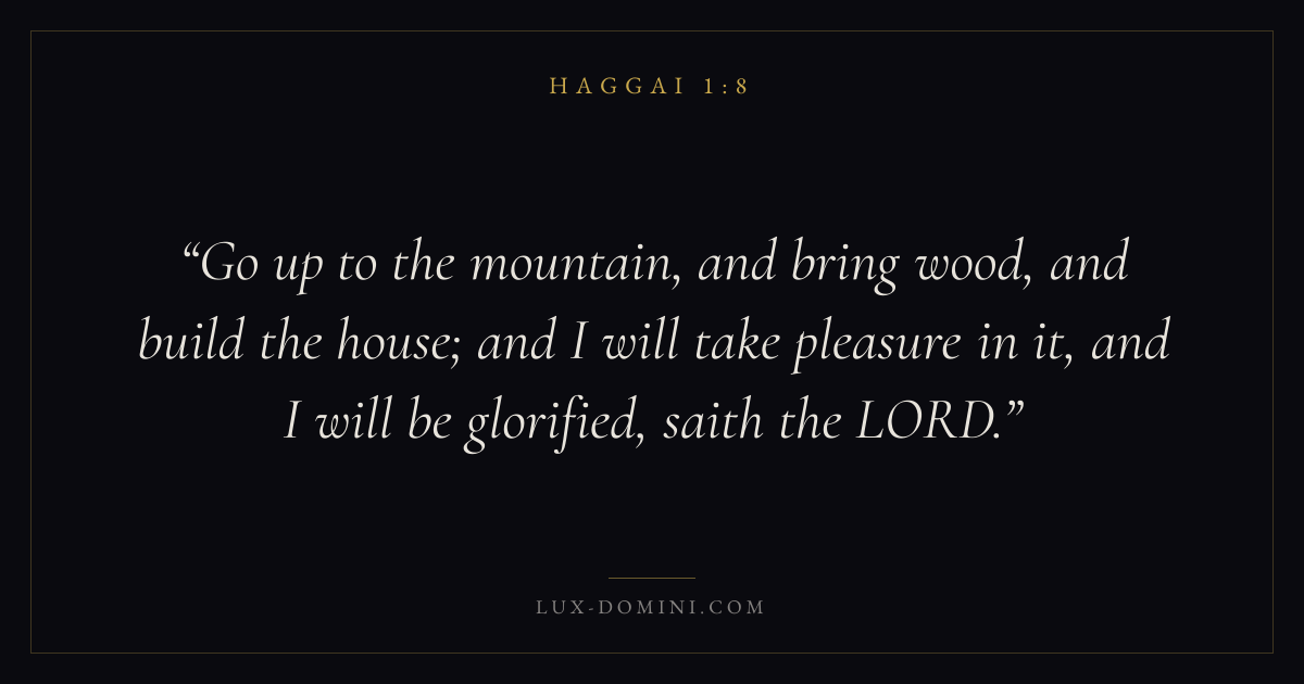 Go up to the mountain, and bring wood, and build the house; and I will take pleasure in it, and I will be glorified, saith the LORD.