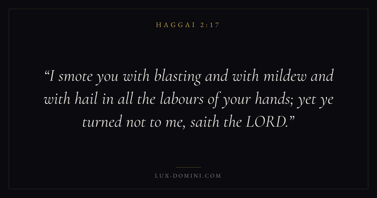 I smote you with blasting and with mildew and with hail in all the labours of your hands; yet ye turned not to me, saith the LORD.