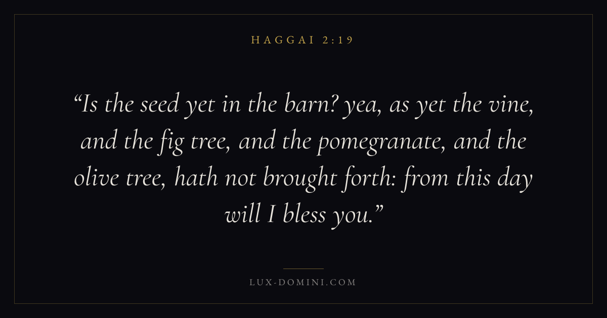Is the seed yet in the barn? yea, as yet the vine, and the fig tree, and the pomegranate, and the olive tree, hath not brought forth: from this day will I bless you.