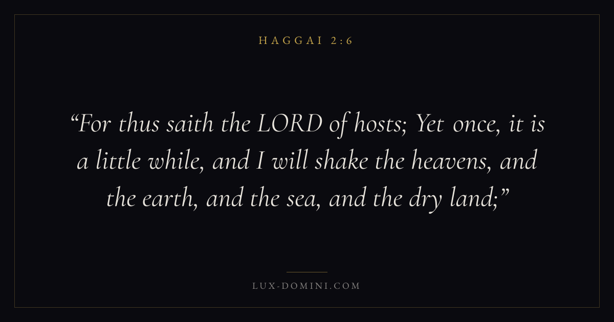 For thus saith the LORD of hosts; Yet once, it is a little while, and I will shake the heavens, and the earth, and the sea, and the dry land;