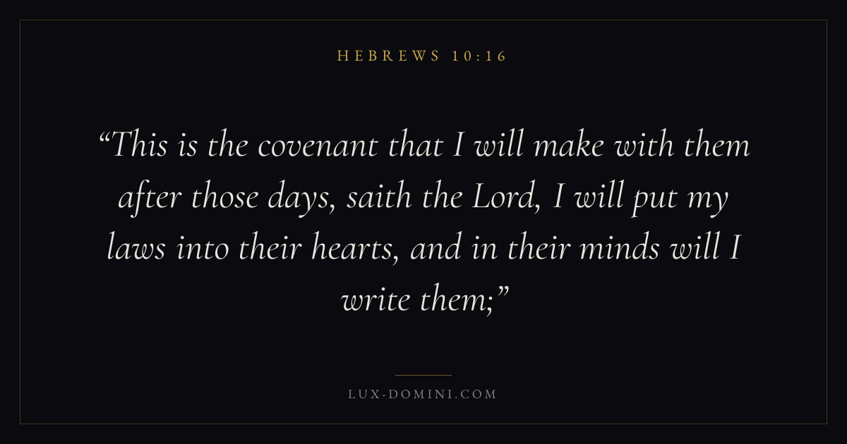 This is the covenant that I will make with them after those days, saith the Lord, I will put my laws into their hearts, and in their minds will I write them;