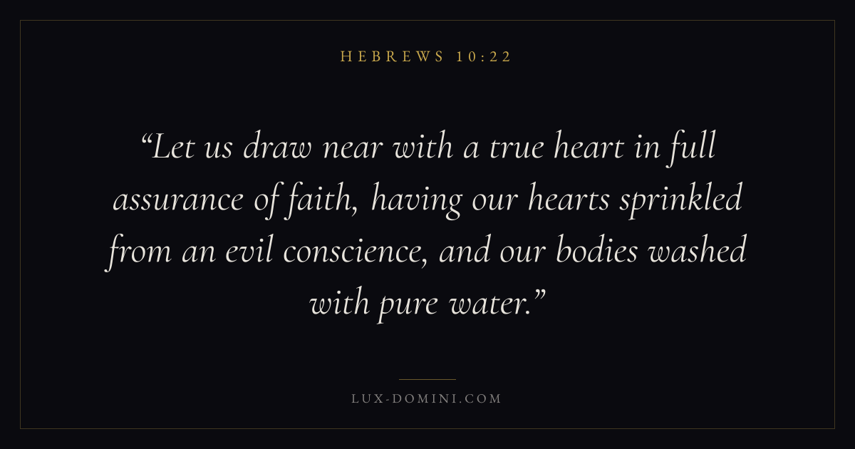 Let us draw near with a true heart in full assurance of faith, having our hearts sprinkled from an evil conscience, and our bodies washed with pure water.