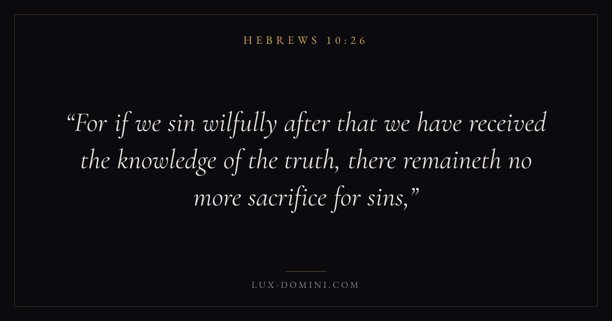 For if we sin wilfully after that we have received the knowledge of the truth, there remaineth no more sacrifice for sins,