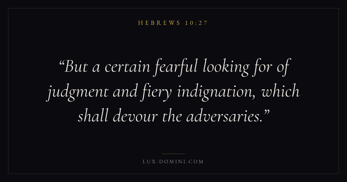 But a certain fearful looking for of judgment and fiery indignation, which shall devour the adversaries.