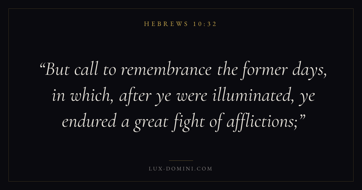 But call to remembrance the former days, in which, after ye were illuminated, ye endured a great fight of afflictions;