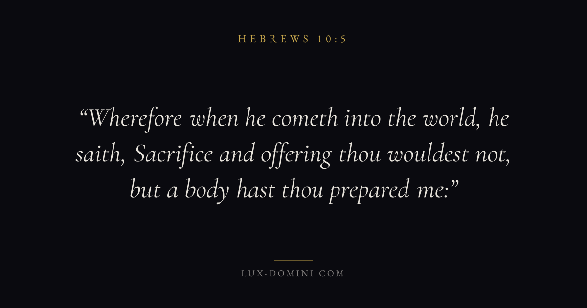 Wherefore when he cometh into the world, he saith, Sacrifice and offering thou wouldest not, but a body hast thou prepared me: