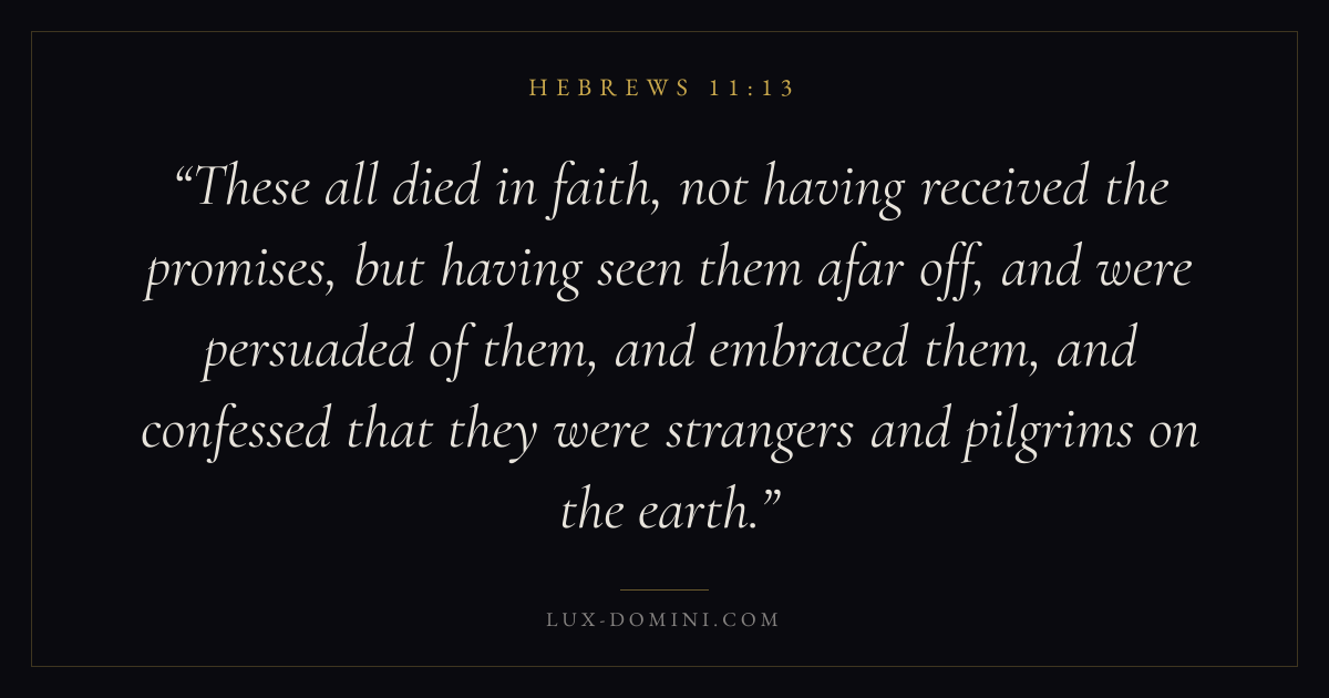 These all died in faith, not having received the promises, but having seen them afar off, and were persuaded of them, and embraced them, and confessed that they were strangers and pilgrims on the earth.