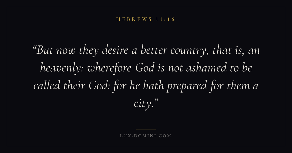 But now they desire a better country, that is, an heavenly: wherefore God is not ashamed to be called their God: for he hath prepared for them a city.