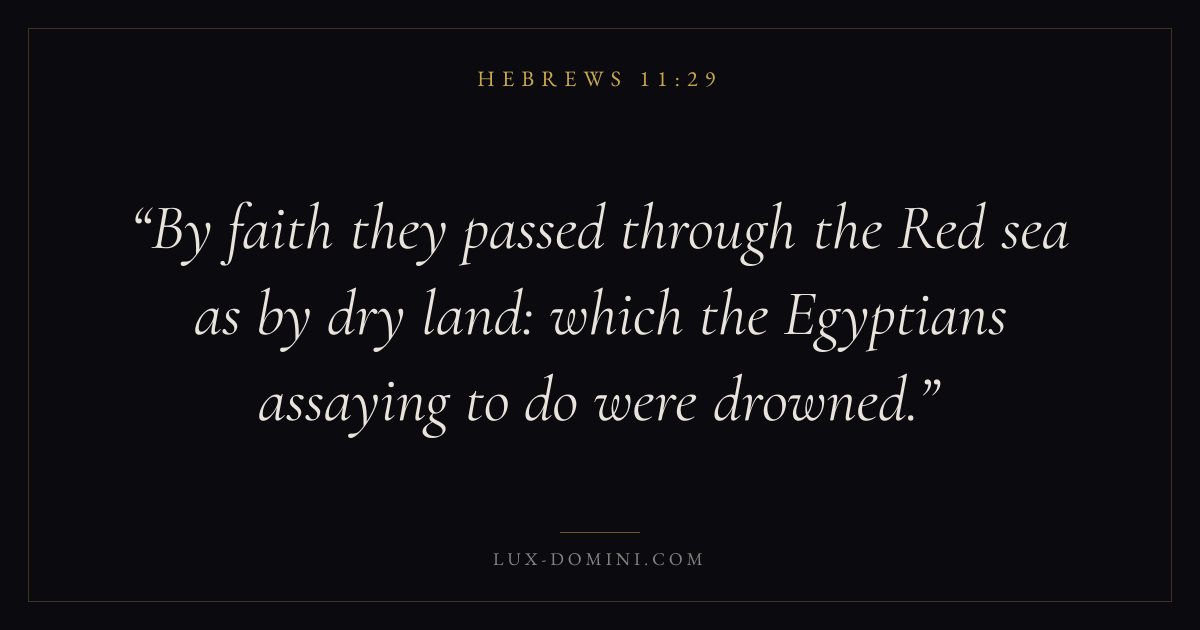 By faith they passed through the Red sea as by dry land : which the Egyptians assaying to do were drowned. By faith they passed through the Red sea as by dry land - Exodus 14:22 , Exodus 14:29 . That is, it was only by confidence in God that they were able to do this. It was not by power which they had to remove the waters and to make a passage for themselves; and it was not by the operation of any natural causes. It is not to be supposed that all who passed through the Red sea had saving faith.