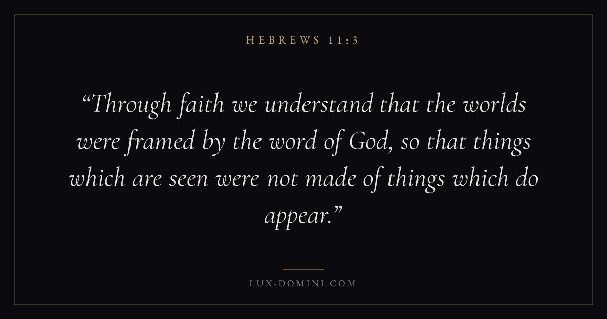 Through faith we understand that the worlds were framed by the word of God, so that things which are seen were not made of things which do appear.