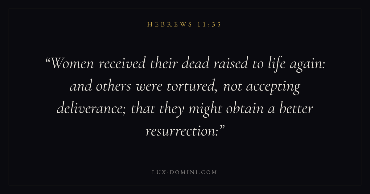 Women received their dead raised to life again: and others were tortured, not accepting deliverance; that they might obtain a better resurrection:
